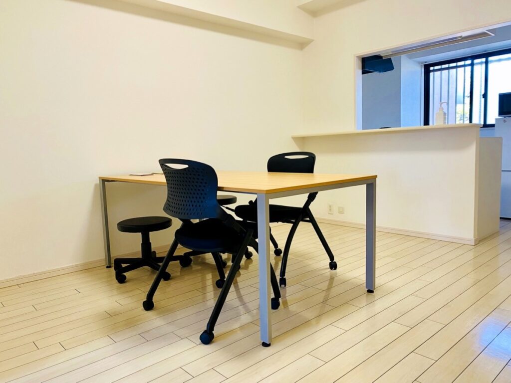事業所内(写真参照)は、プライバシーを守りつつ、落ち着いてお話のできる明るい雰囲気を整えました。