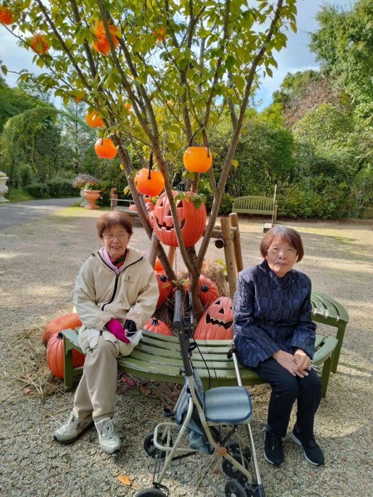 バラ園はあまり咲いていませんでしたが、ハロウィンの飾りや
