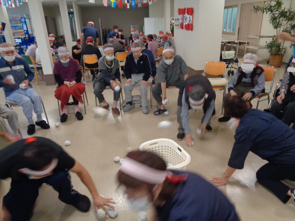 まずは玉入れです。みなさん、真剣にかごをめがけて投げ入れていました。